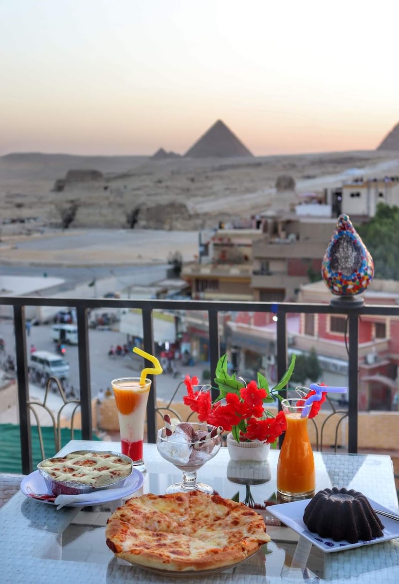 Welcome to Gravity Rooftop Cafe, a hidden gem nestled in the heart of Nazlet El-Semman, Giza, where breathtaking views of the iconic Pyramids and Sphinx create a picturesque backdrop for your culinary adventures. This rooftop haven invites you to experience the magic of dining al fresco while savoring refreshing beverages and a vibrant atmosphere crafted for relaxation and enjoyment.